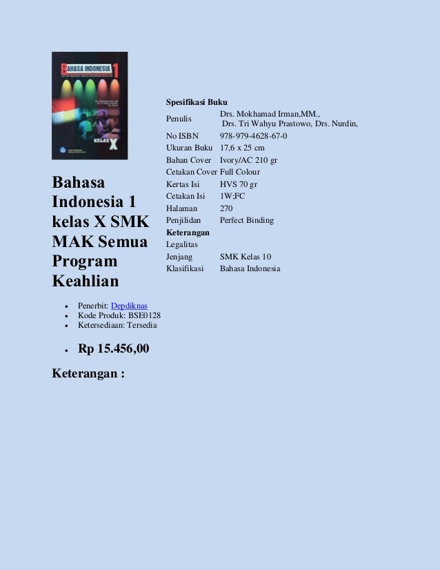 Buku Bahasa Indonesia Kelas 10 Smk / Buku Bahasa Indonesia Kelas 10 K13 - Revisi Sekolah / Jangan lupa komentar dan saran dibawah ini.. 33 full pdfs related to this paper. Petunjuk umum buku guru kelas x sma/ma/smk/mak vi a. A short summary of this paper. Bisa download file pdf, baca online. Minggu, 06 mei 2018 tambah komentar.