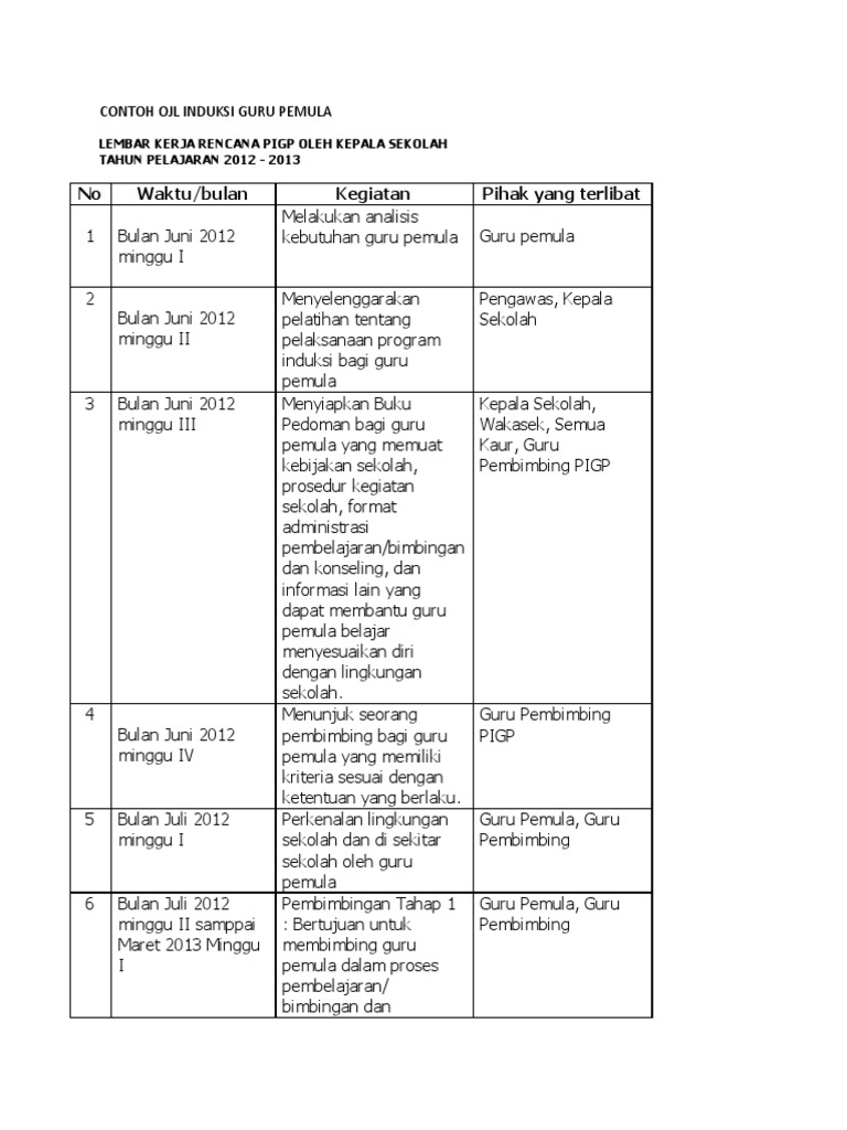 Berkas file dan panduan pigp (program induksi guru pemula) 2015. Berikut ini kutipan teks dari isi berkas contoh laporan induksi guru pemula (pigp): Berikut adalah contoh laporan pigpm: Selain itu, anda boleh melaporkan, saya sudah menyelesaikan 5 survei atau saya melayani 4 pelanggan setiap hari. 12 komentar untuk program induksi guru pemula (pigp), berikut pedoman dan contoh laporannya Tak perlu berpanjang lebar saya menjelaskan. Program induksi guru pemula adalah kegiatan orientasi, pelatihan di tempat kerja, pengembangan, dan praktik pemecahan berbagai permasalahan dalam proses pembelajaran/bimbingan dan konseling bagi guru pemula pada sekolah/madrasah di tempat tugasnya.guru pemula adalah guru yang baru pertama kali ditugaskan melaksanakan proses pembelajaran/bimbingan dan konseling pada satuan pendidikan yang. A short summary of this paper. Makasih infonya, saya sudah download contoh laporan pigp yogya, kalau ada mhn si sahrre contoh laporan pigp kab pdg. Melalui blog ini, saya ingin terus belajar sambil berbagi. Juknis nomor 5792 tahun 2019 tentang pigpm ; Penulsi ucapkan selamat dan sukses kepada bapak/ibu guru yang sudah menjadi seorang pegawai negeri sipil. I wayan ardika saya adalah seorang guru yang mengajar di sdn 6 yehembang, kec.
