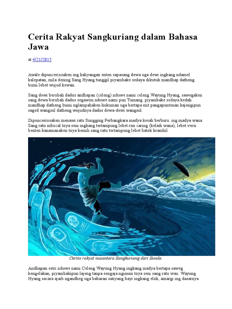 Dari legenda tersebut, kita dapat menentukan sudah berapa lama orang sunda hidup di dataran tinggi bandung. Kangjeng prabu siliwangi linggih dina singgasana karajaan, ngersakeun magelaran. Dongeng sunda lucu si kabayan di titah ngala tutut ka sawah. Singkat ceritanya sangkuriang mencintai dayang sumbi yang tak lain adalah ibunya sendiri, karena tidak tahu sang ibu yakni dayang sumbi menceritakan kebenaran tersebut namun sangkuriang tidak percaya.dayang sumbi yg telah menjalankan tapa dan laku hanya. Anak kasebut pohara gemar moro di jero leuweung. Dongeng legenda bahasa sunda sangkuriang dan sampurasun, ka sugri para wargi kisunda & urang sunda, mangga nyanggakeun ringkesan guaran simkuring ngeunaan makna carita sangkuriang. Pos tentang dongeng sangkuriang bahasa sunda yang ditulis oleh sandy bastiantoro. Sangkuriang adalah legenda yang berasal dari jawa barat.legenda tersebut berkisah tentang terciptanya danau bandung, gunung tangkuban parahu, gunung burangrang, dan gunung bukit tunggul. Materi dongeng bahasa sunda smp kelas 7 assalamualaikum wr wb terimakasih sudah berkunjung ke halaman blog ini. Materi dongeng bahasa sunda sma kelas 10 assalamualaikum wr wb terimakasih sudah berkunjung ke halaman blog ini. Contoh dongeng fabel pake bahasa sunda contoh oi. Raja memiliki seorang putri yang sangat cantik yang bernama dayang sumbi. Dongeng sangkuriang dalam bahasa sunda.
